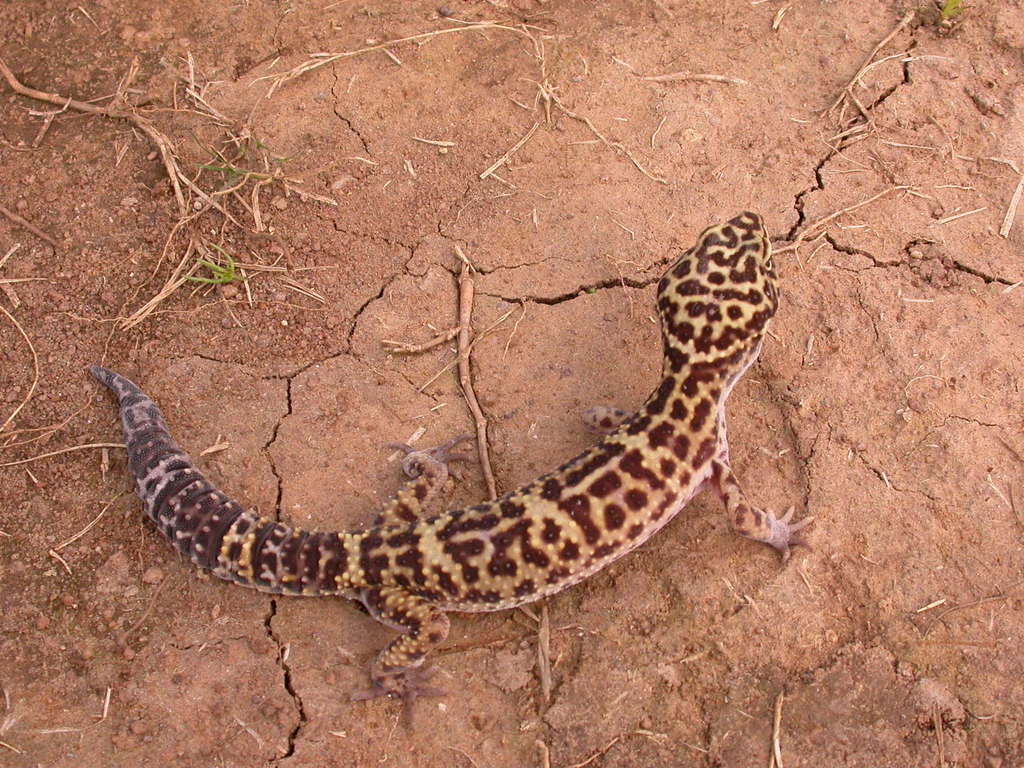 The leopard gecko (Eublepharis macularius) is a cathemeral, ground-dwelling lizard naturally found in the highlands of Asia and throughout Afghanistan, to parts of northern India. Unlike most geckos, leopard geckos possess movable eyelids, and cannot climb up smooth surfaces. It has become a well-established and popular pet in captivity.