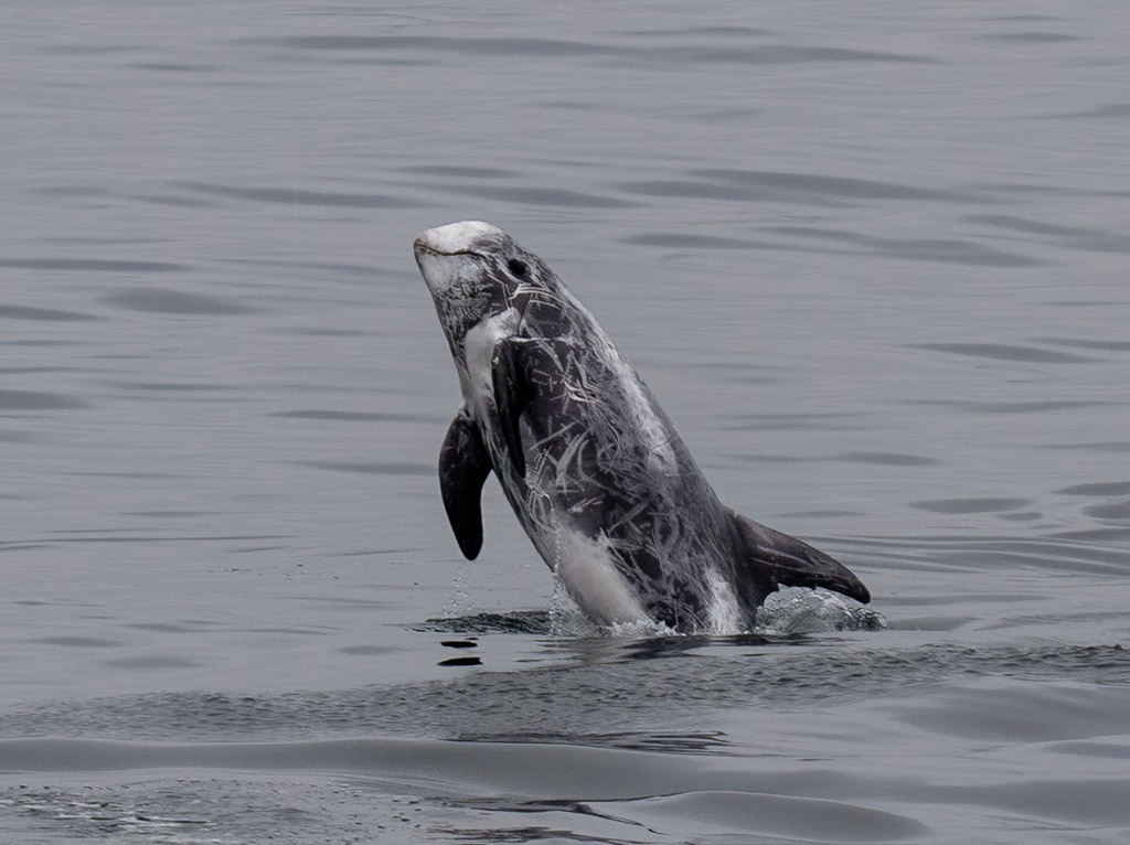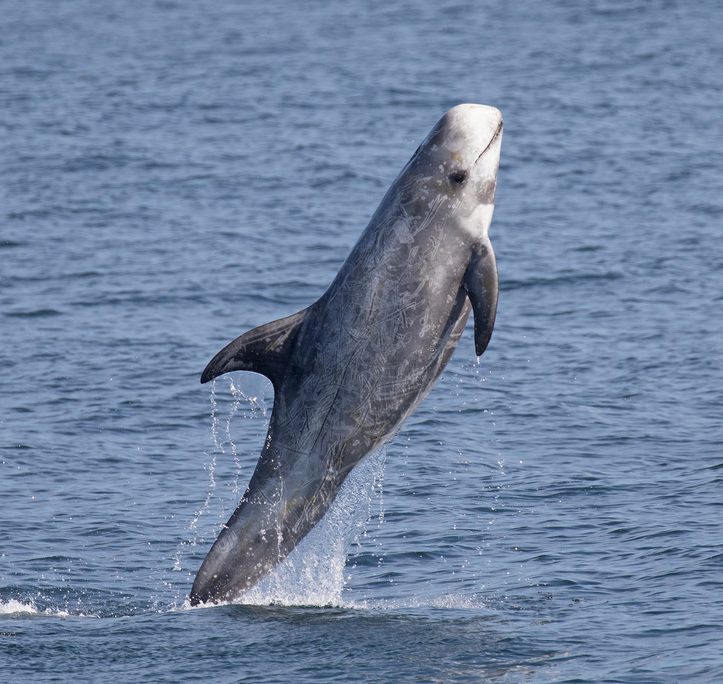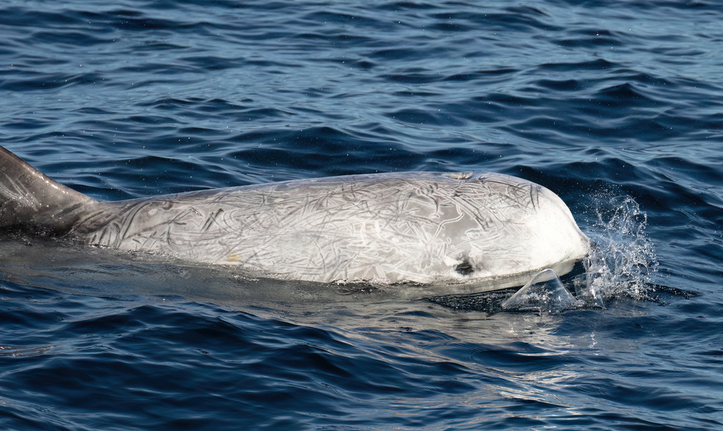 Risso's dolphin (Grampus griseus) is the only species of dolphin in the genus Grampus. It is commonly known as the Monk dolphin among Taiwanese fishermen.