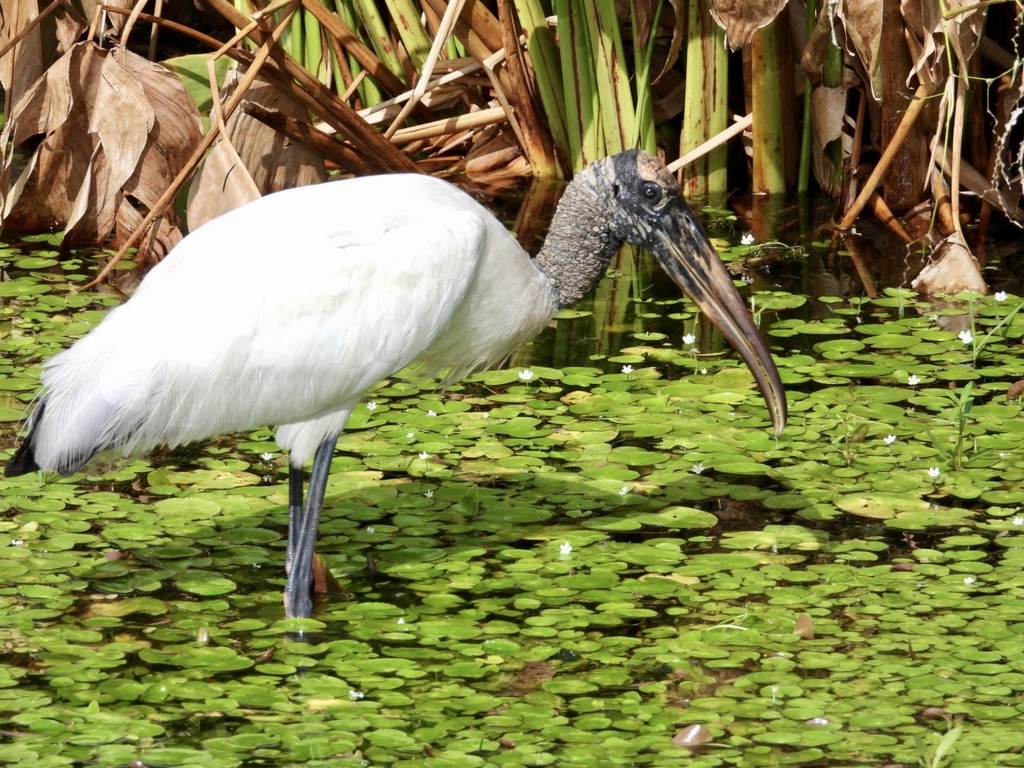 The wood stork (Mycteria americana) is a large American wading bird in the stork family Ciconiidae. It was formerly called the "wood ibis", though it is not an ibis. It is found in subtropical and tropical habitats in the Americas, including the Caribbean. In South America, it is resident, but in North America, it disperses to as far as South America. It was originally described by Carl Linnaeus in 1758. It likely evolved in tropical regions....